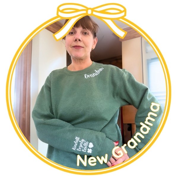Picture this: She unwraps the box, sees “Oma” stitched on the neckline, and her grandkids’ names flowing down the sleeve. Her smile softens. Her heart warms. She feels seen, loved, and beautifully remembered.