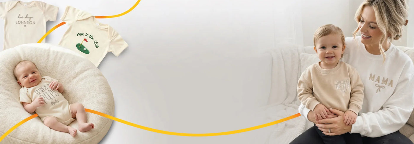 Whether you’re shopping for a baby shower, pregnancy announcement, newborn gift, or a pet sibling reveal, these custom onesies are thoughtful gifts made to capture love, family, and connection. Personalization options include names, text, initials, photos, pet portraits, and more - all created with care and attention to detail.