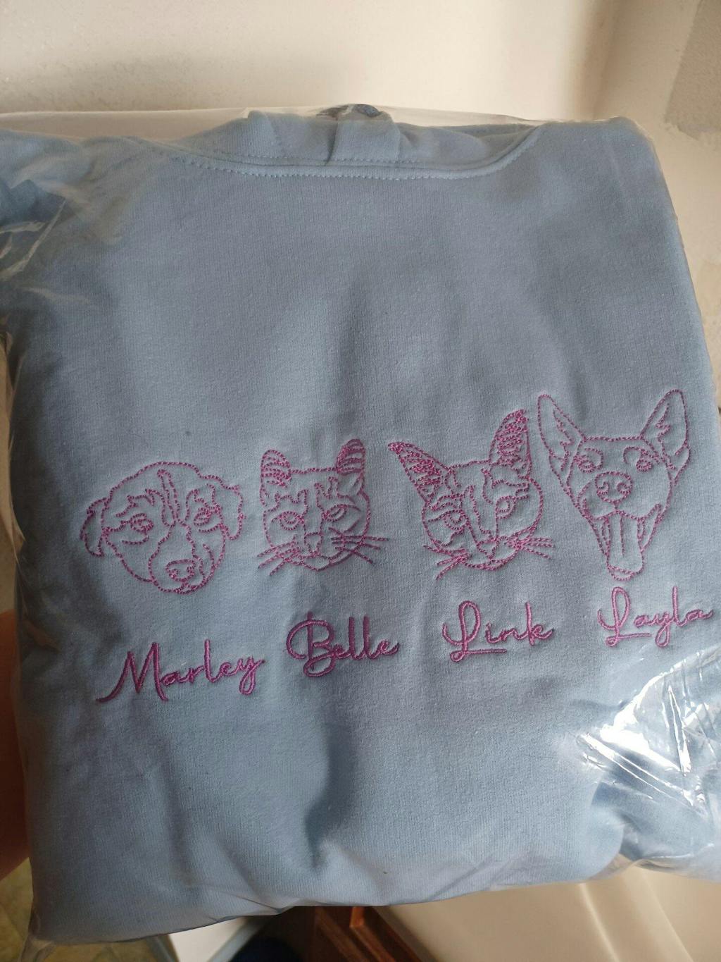 I got the embroidered pet hoodie for my daughter with both of her kitties on there. The embroidered images look exactly like them and even captured their personalities. She loves it!