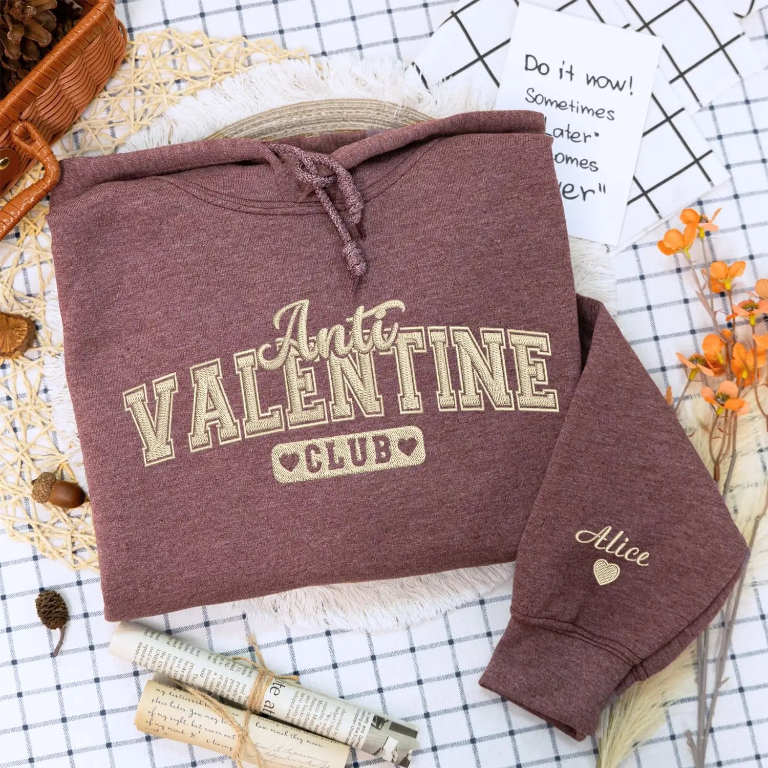 This embroidered Anti Valentine Club hoodie is made for anyone choosing self-worth over forced romance. Designed as a Valentine gift for yourself, it turns Valentine’s Day into a personal statement of independence, confidence, and emotional clarity.