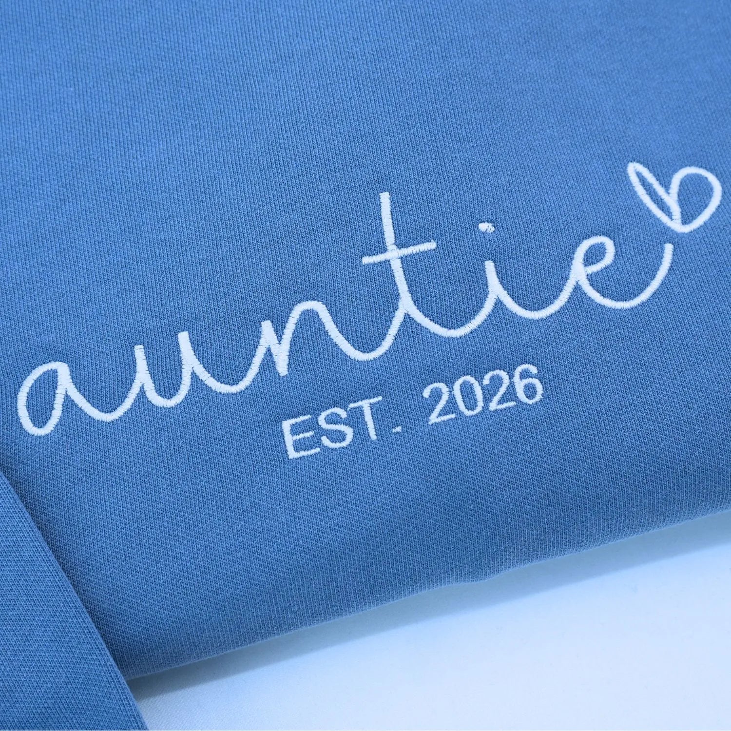 Celebrate the love between an aunt and her favorite little people with this custom embroidered Aunt T-Shirt or Sweatshirt.