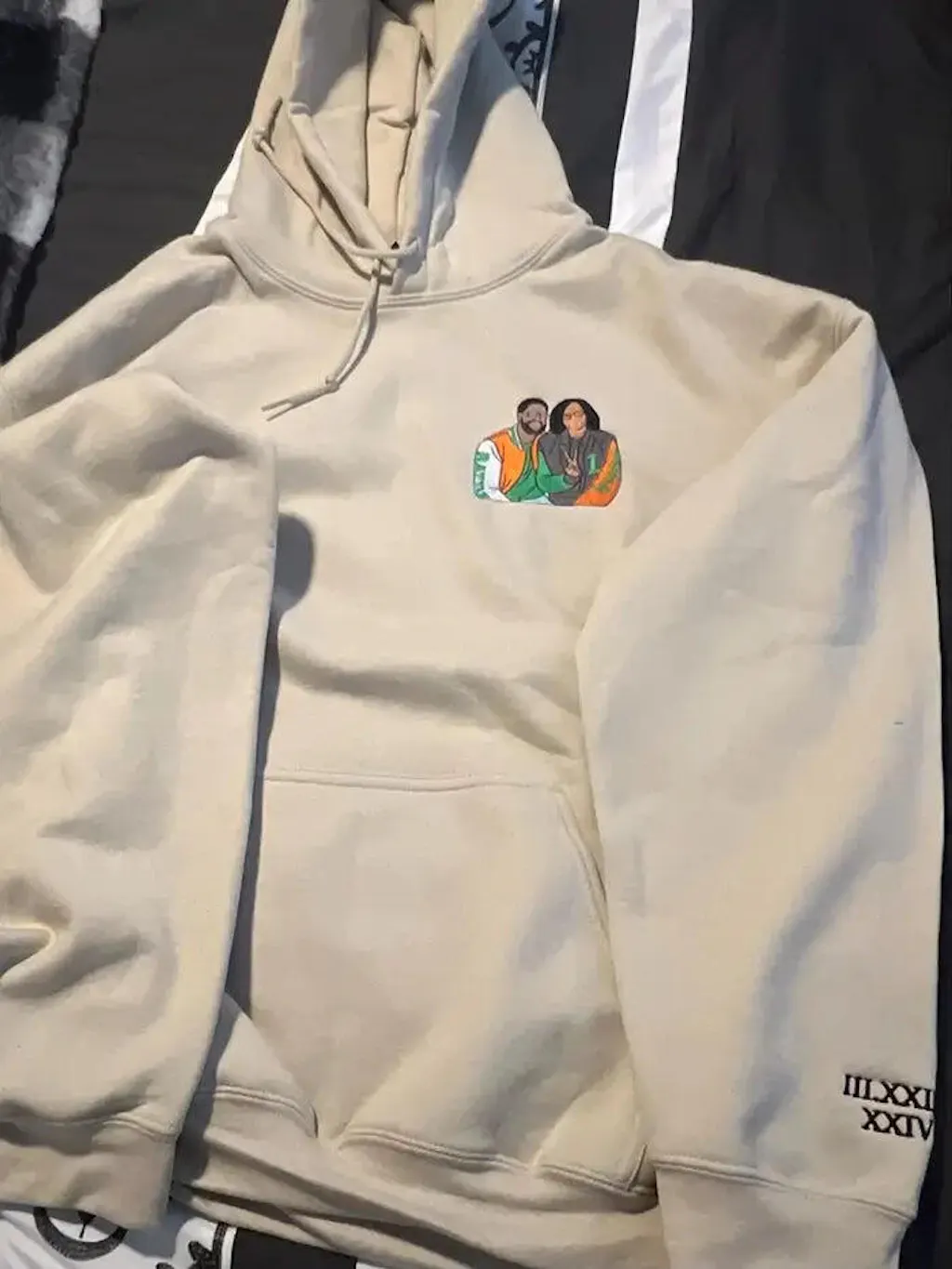 Once approved, the design is embroidered onto the sweatshirt and shipped to you via USPS.