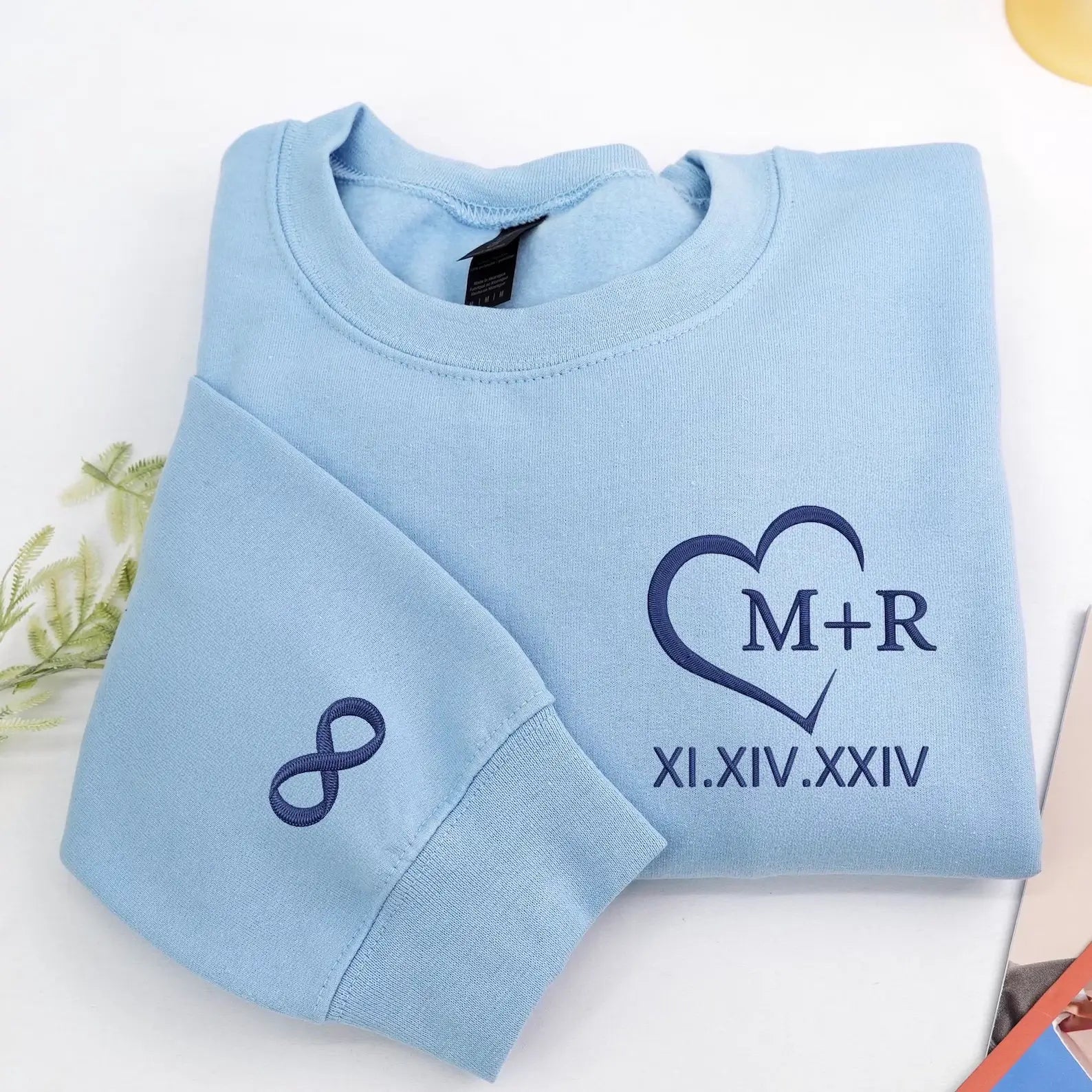 Choose your hoodie or sweatshirt, enter your initials, and create a meaningful embroidered anniversary gift that tells your love story.