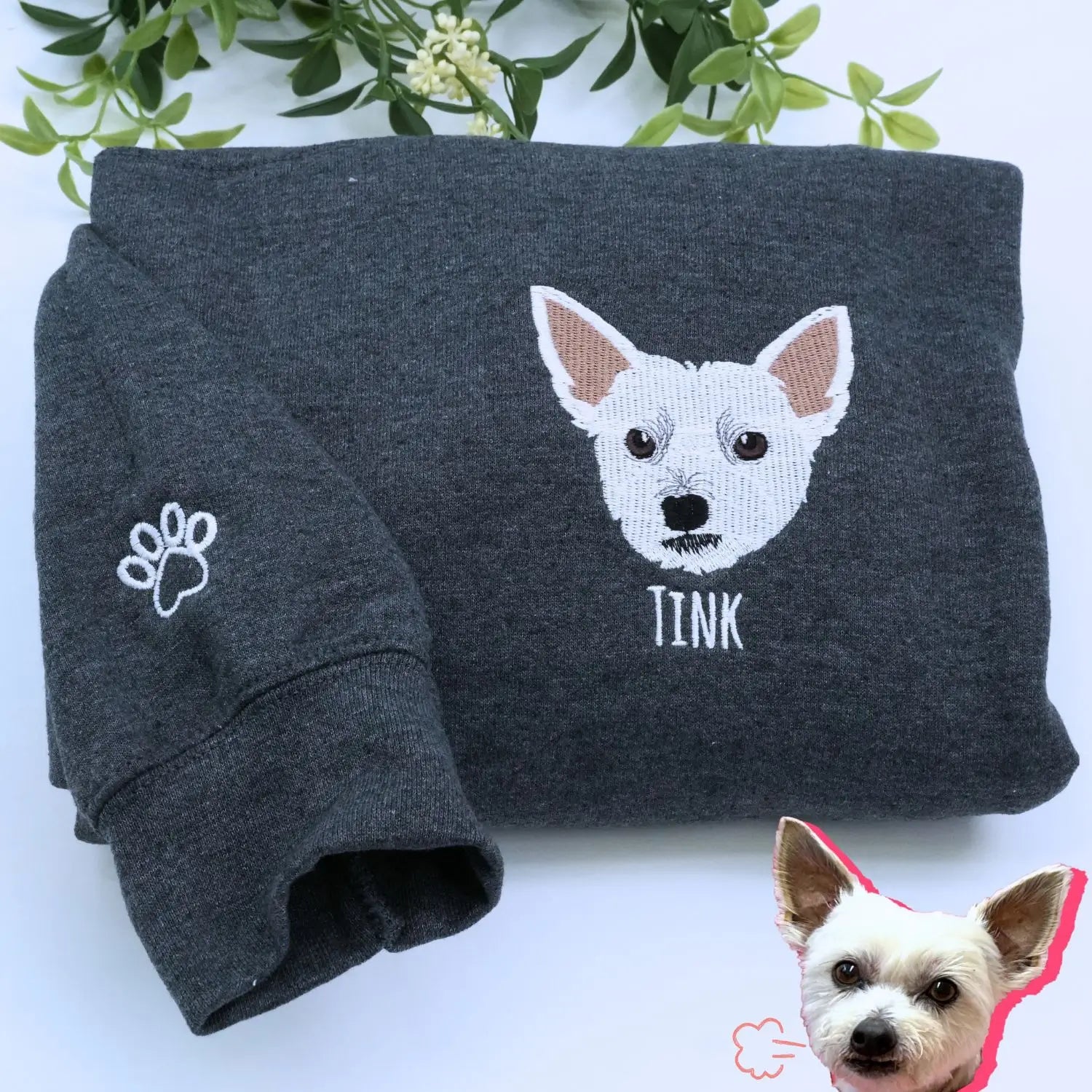 A pet embroidered sweatshirt or hoodie is indispensable for pet lovers. Check out our high-quality products, design your pet's portrait and embroider its name on our dog sweatshirts.