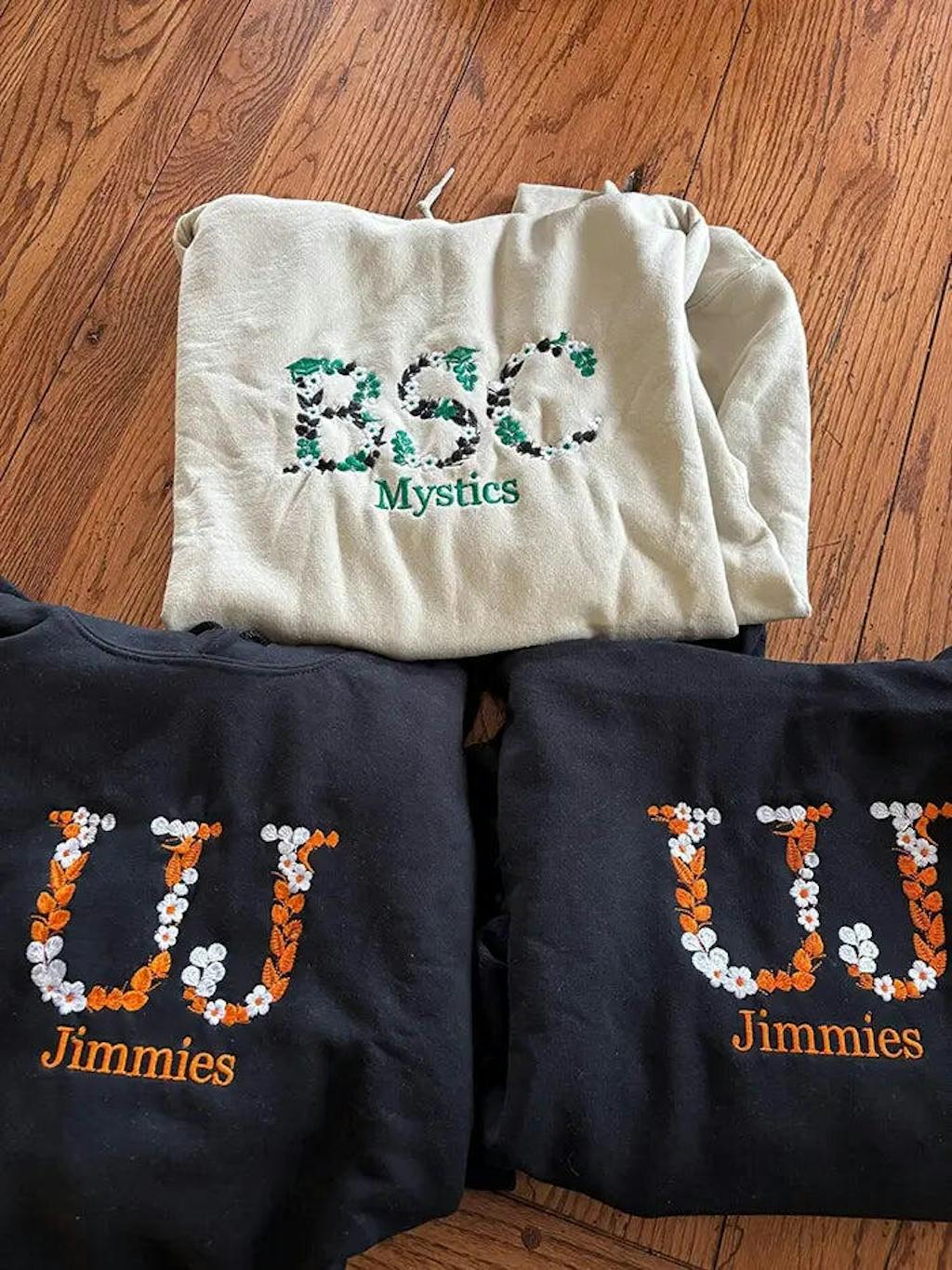 Once approved, the design is embroidered onto the sweatshirt and shipped to you via USPS.