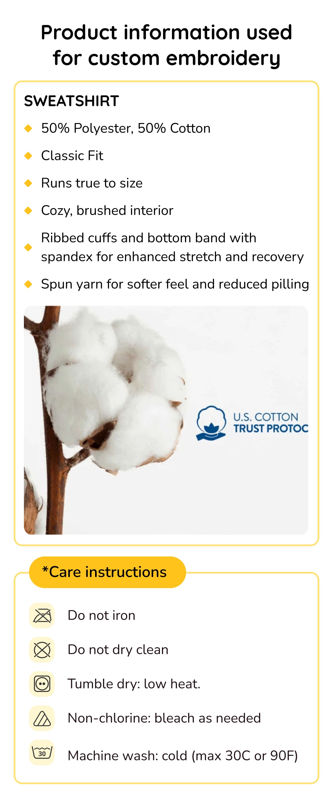 Once approved, the design is embroidered onto the sweatshirt and shipped to you via USPS.