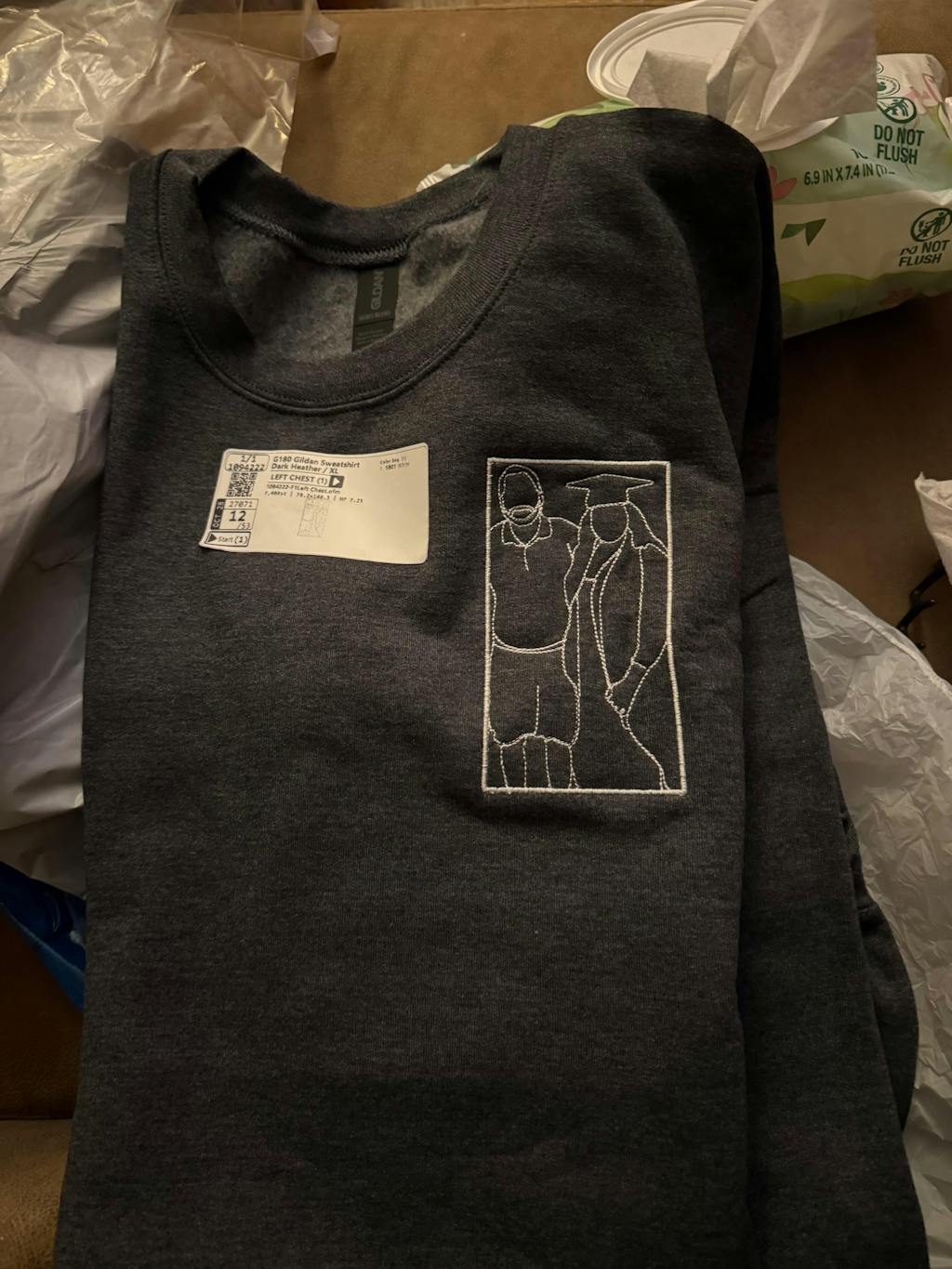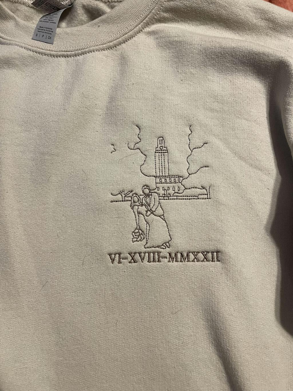 Once approved, the design is embroidered onto the sweatshirt and shipped to you via USPS.