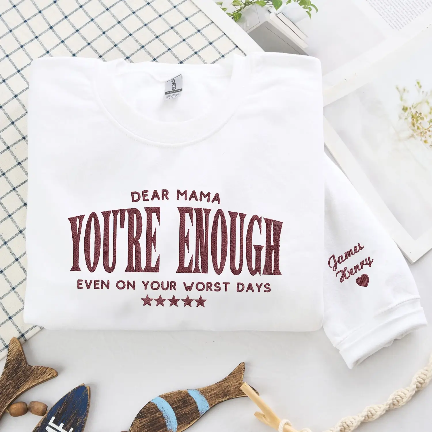 Celebrate the strength and love of motherhood with the Custom Embroidered “Dear Mama, You’re Enough” Sweatshirt or Hoodie - a meaningful gift designed for moms who give their all every day.