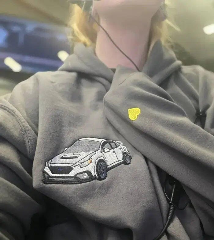This Hoodie with Photo Car allows you to showcase your love for cars in a unique and fashionable way. The custom car sweatshirts ensure that no two pieces are exactly alike. Using advanced embroidery techniques, the car is rendered with precision, capturing every detail from the sleek curves to the iconic grille. The embroidery showcases the car from multiple angles, giving it a lifelike and dynamic appearance. On the sleeve, your initials are embroidered with a heart symbol, adding a personalized touch. It's a thoughtful way to celebrate someone’s passion for automobiles.