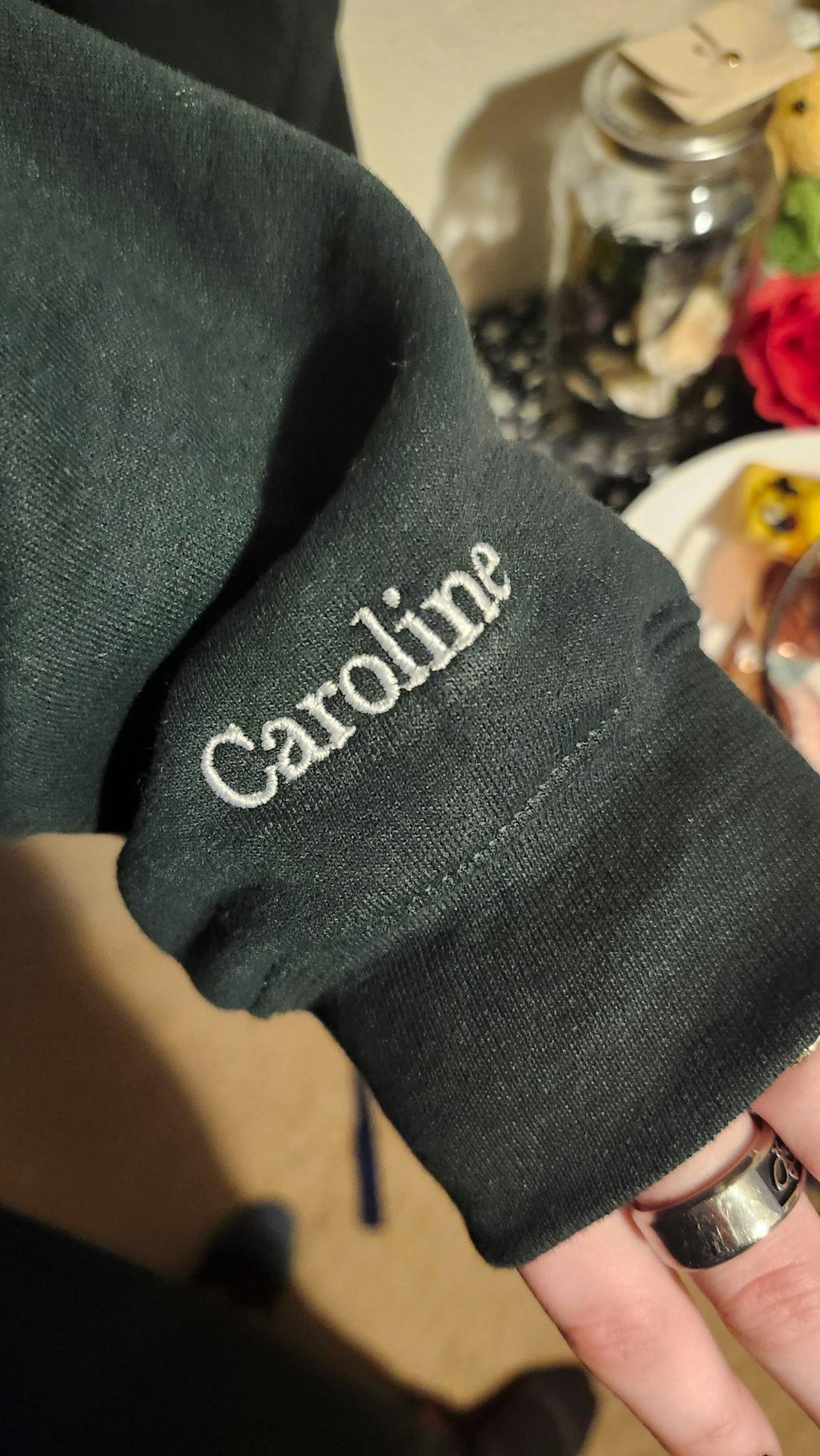 Once approved, the design is embroidered onto the sweatshirt and shipped to you via USPS.