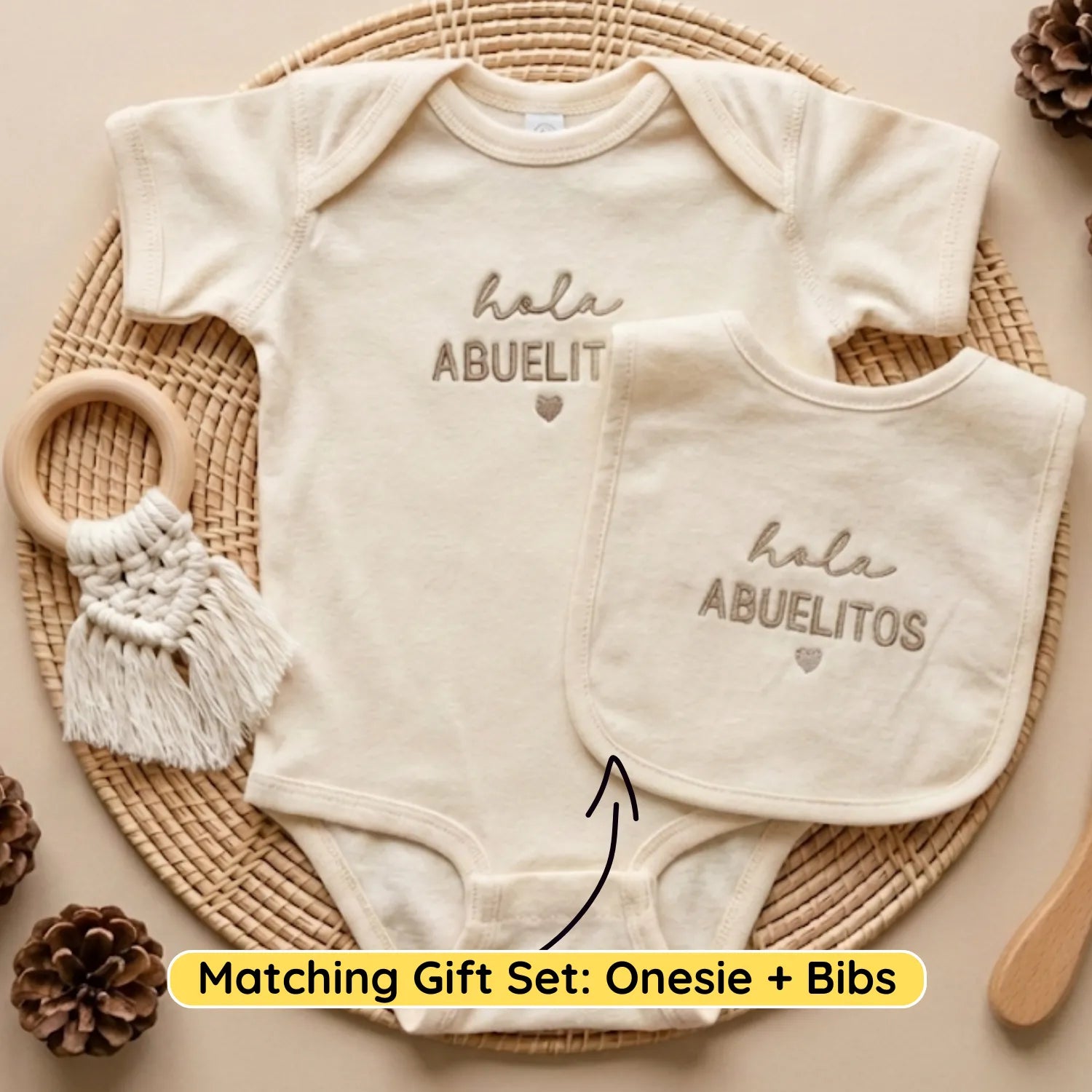 More than just a baby outfit, this Hola Abuelitos onesie represents love, family, and the joy of welcoming a new generation.