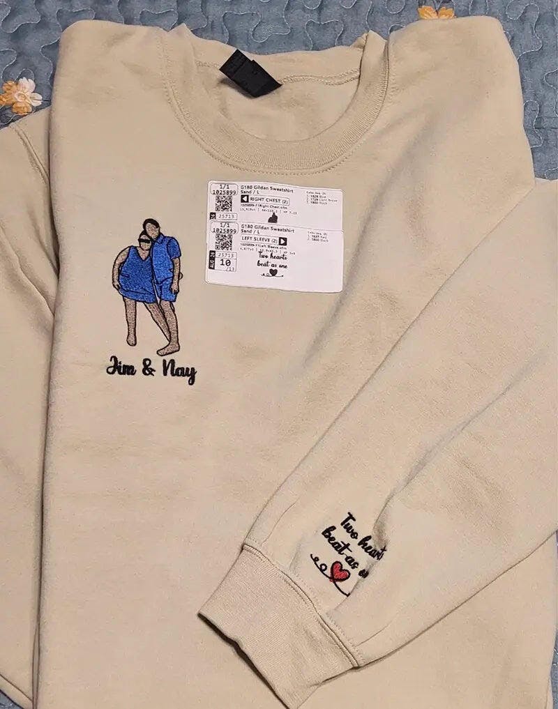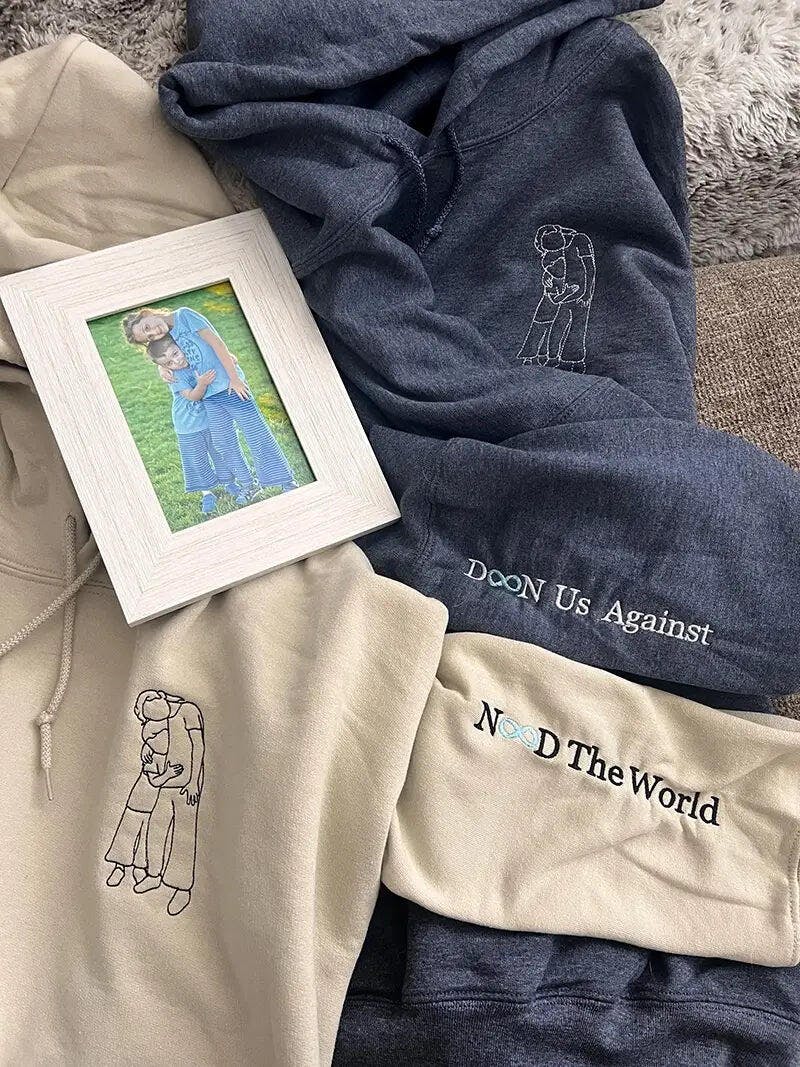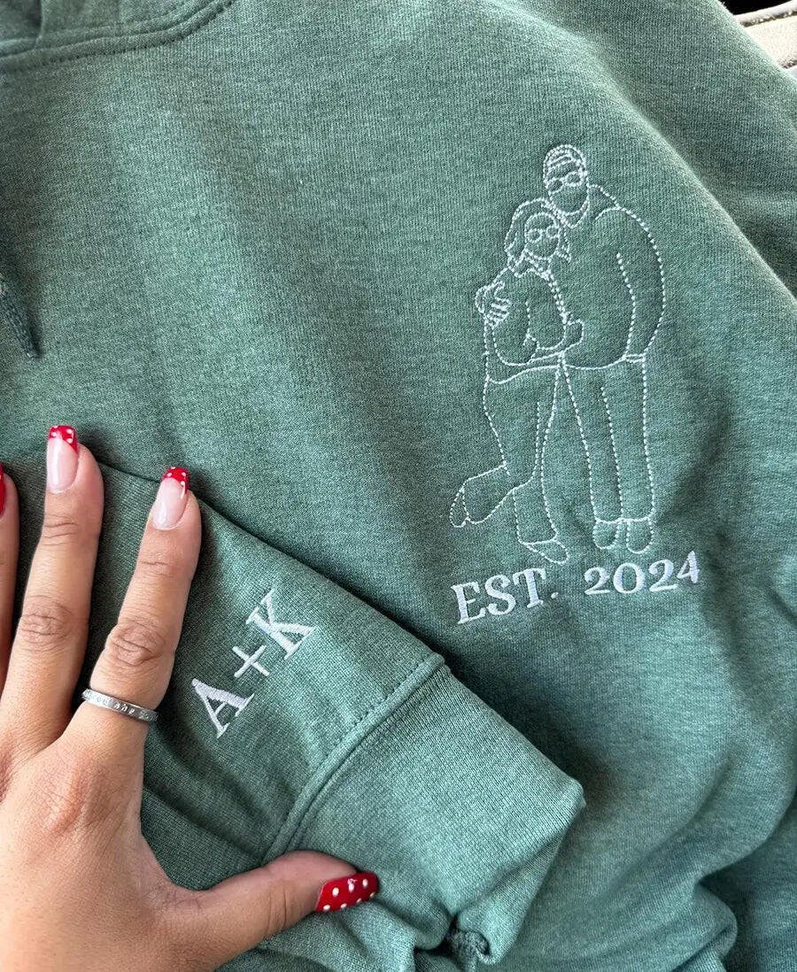 “He laughed when he saw us on the hoodie… then wore it every day for a week. The embroidery turned out way better than either of us expected.”