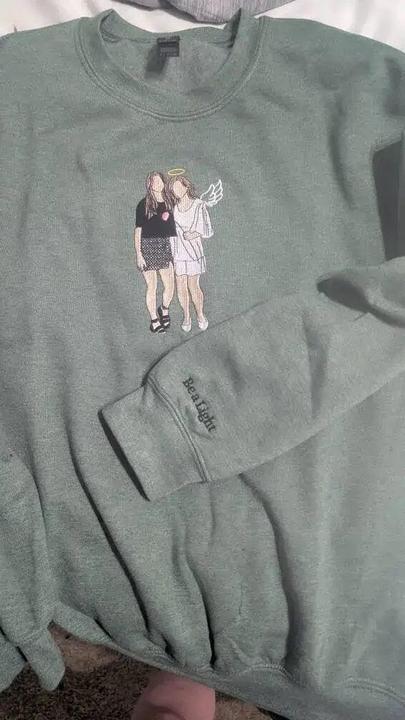 Custom Embroidered Line Art Hoodie from Your Photo, Memorial Sweatshirts