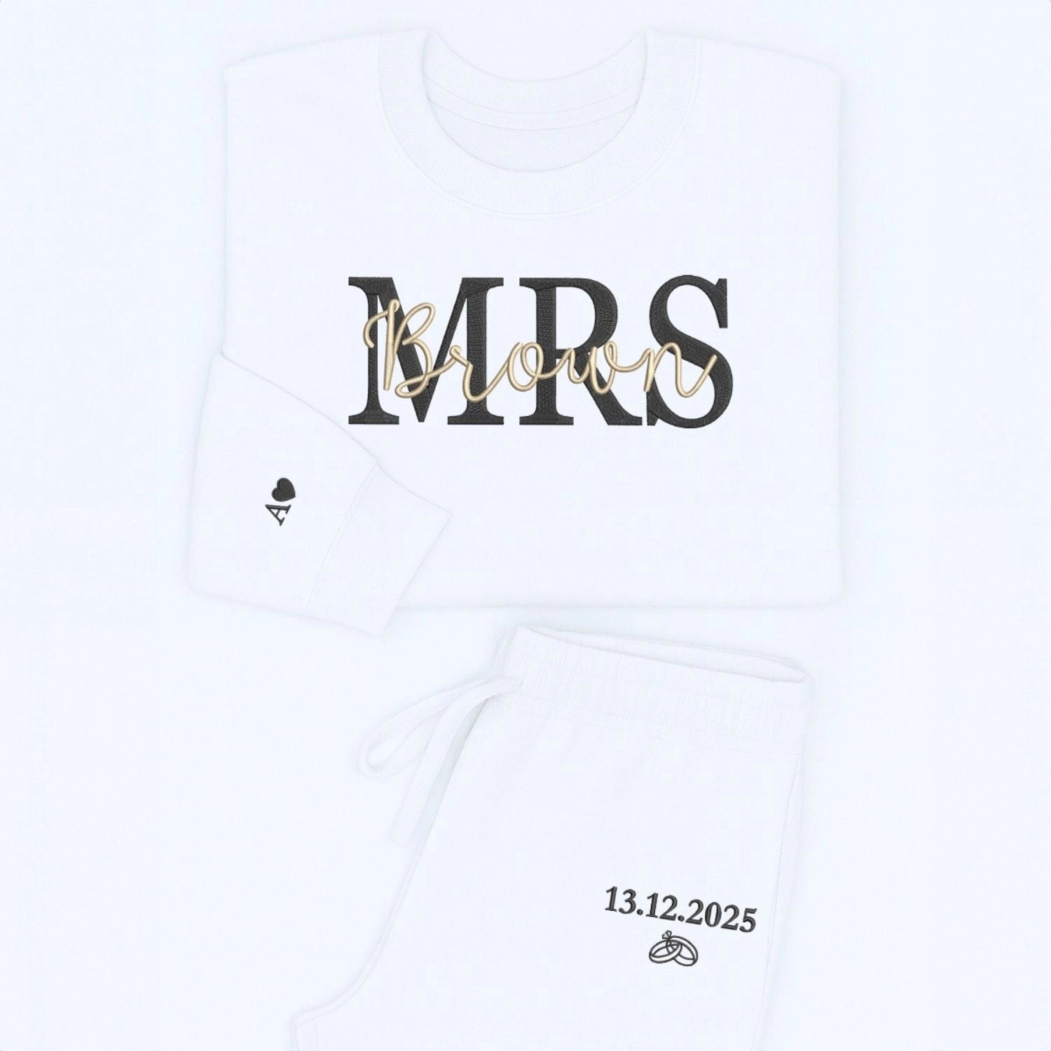 Celebrate love in the most meaningful way with these personalized Mr and Mrs embroidered sweatsuits, crafted for couples who want comfort, connection, and a beautiful keepsake during their honeymoon. This matching set features high-quality embroidery and customizable details, making it a standout gift for newlyweds and engaged couples. Designed for cozy travel days, honeymoon photos, or relaxed nights together, it adds a heartfelt touch to every moment.