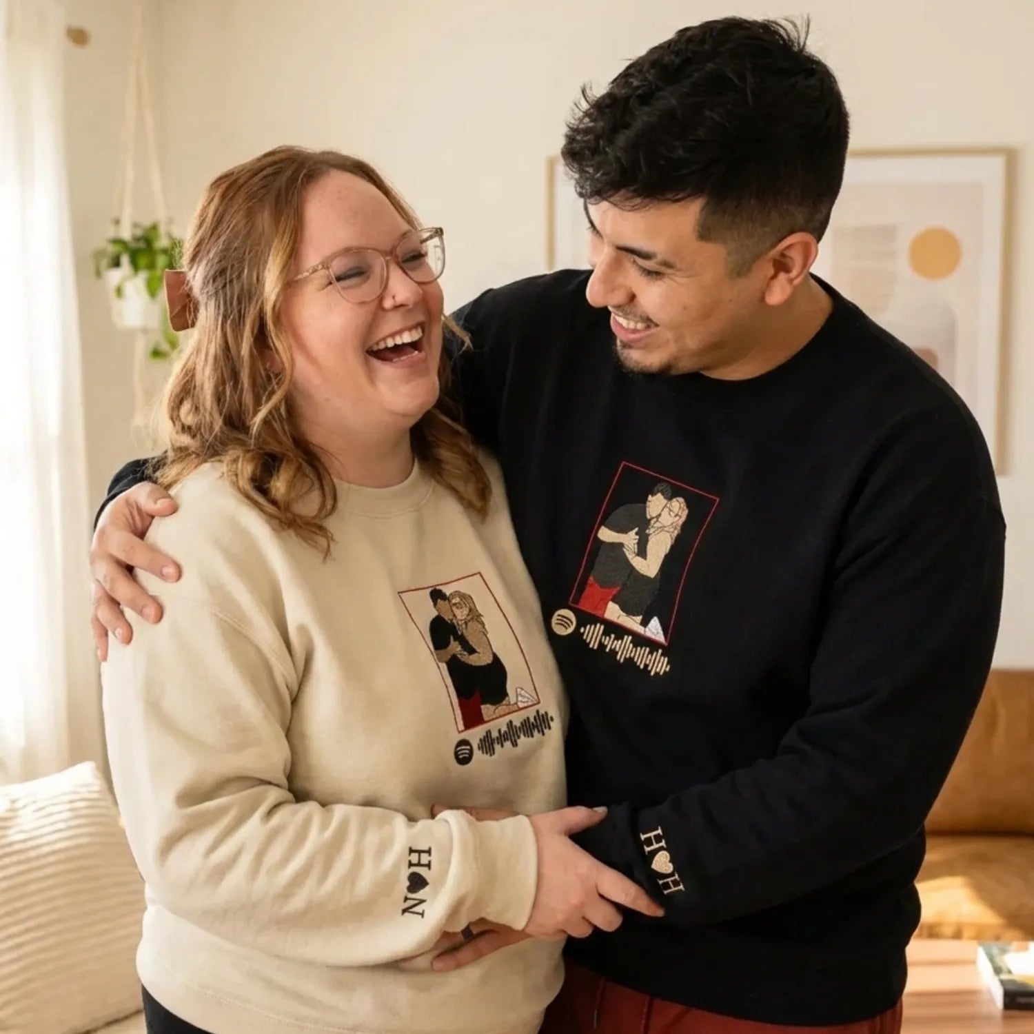 Custom Embroidered Couple Sweatshirt with Music Code – Turn Your Song Into a Wearable Memory