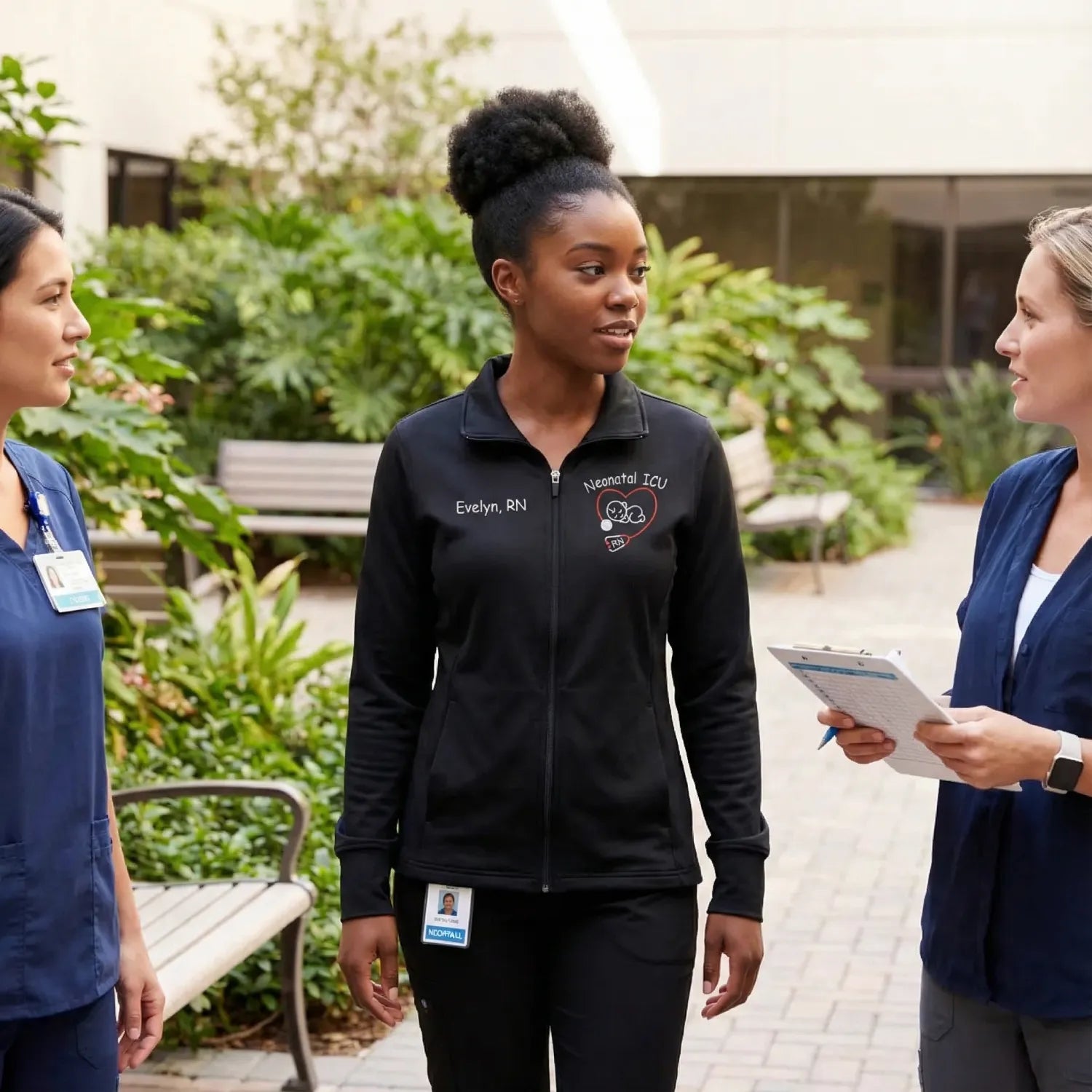 Celebrate the dedication of neonatal nurses with a personalized NICU jacket embroidered with their name and professional title. Designed as both a functional uniform essential and a heartfelt gift of recognition, this jacket is perfect for NICU nurses who spend countless hours caring for the most fragile lives.