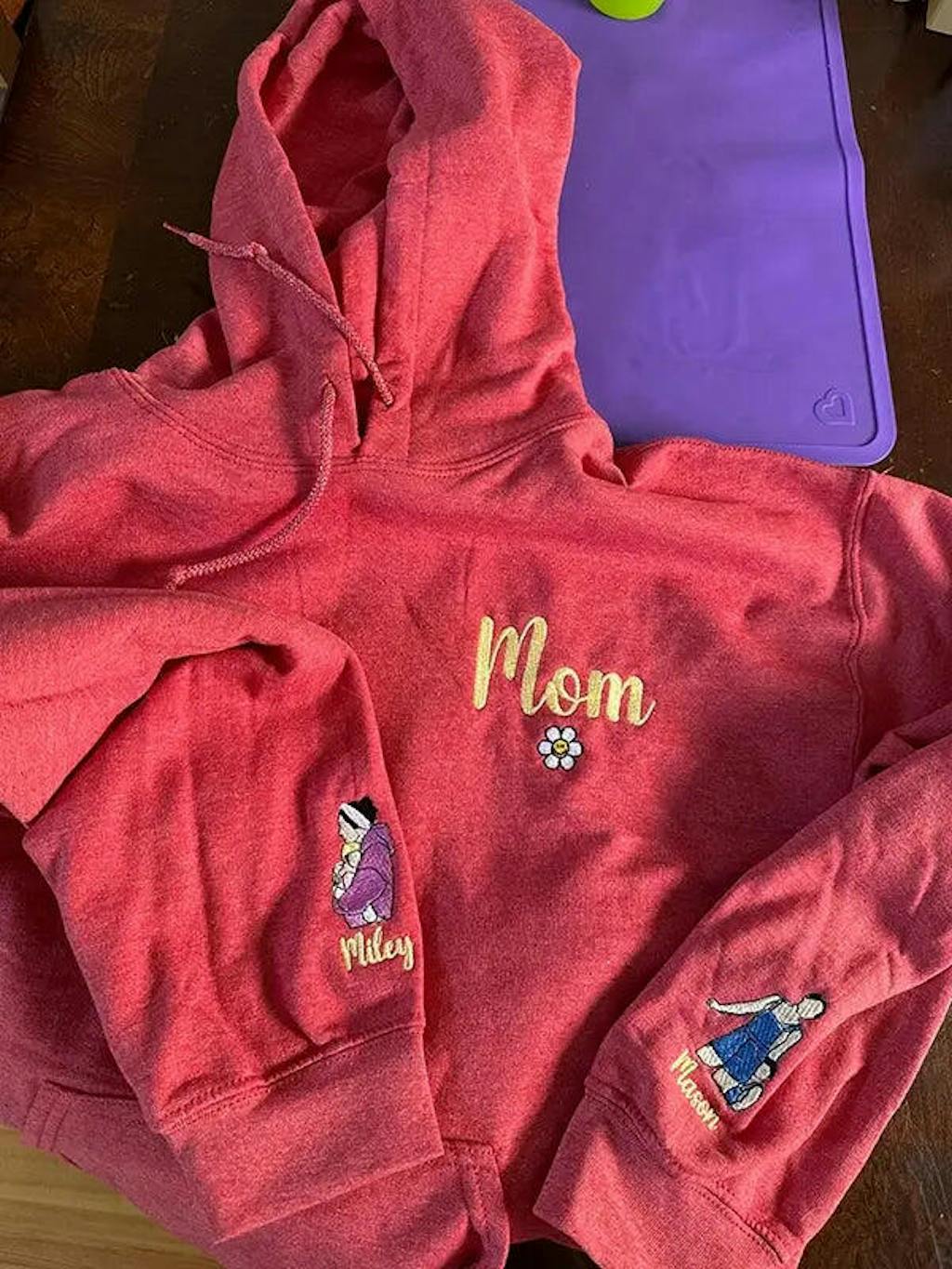 Once approved, the design is embroidered onto the sweatshirt and shipped to you via USPS.