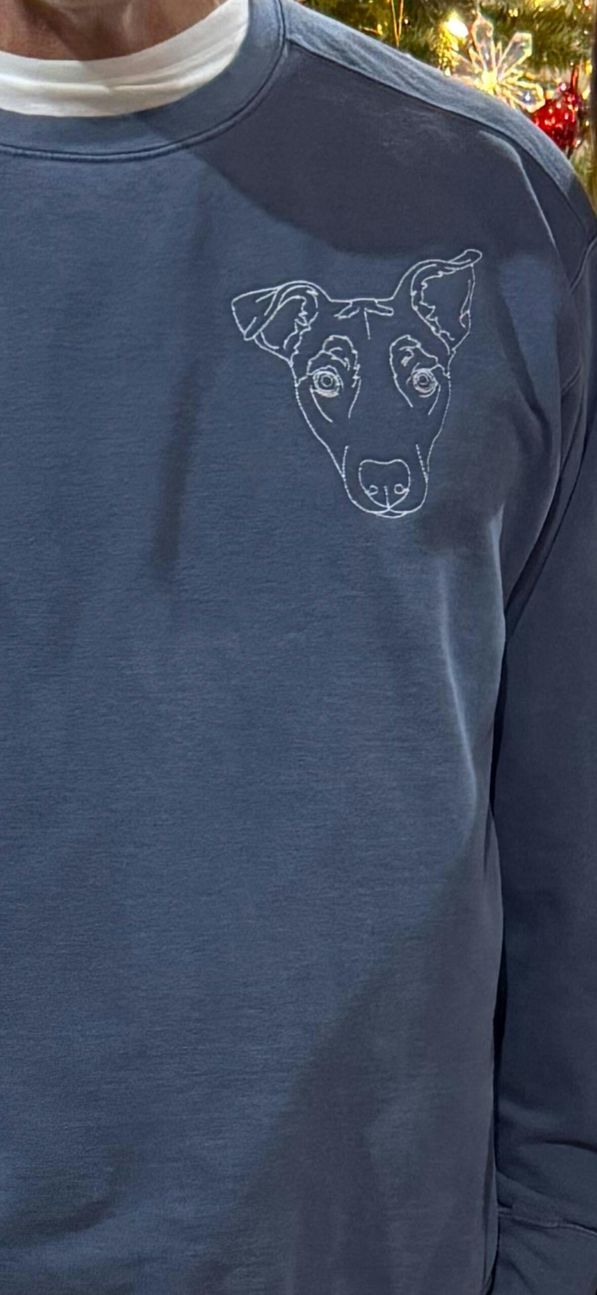 The Embroidered Dog Face and Dog Name Sweatshirt is a delightful item for dog lovers. This sweatshirt features a detailed embroidered dog's face, accompanied by their name. It's ideal to wear the dog embroidered sweatshirt for casual wear, dog walks, or lounging at home. On Embroly.com, you can choose colors and customize a unique gift for yourself or any pet lovers, dog dads, dog moms, dog mamas, dog grandmas, and more.
