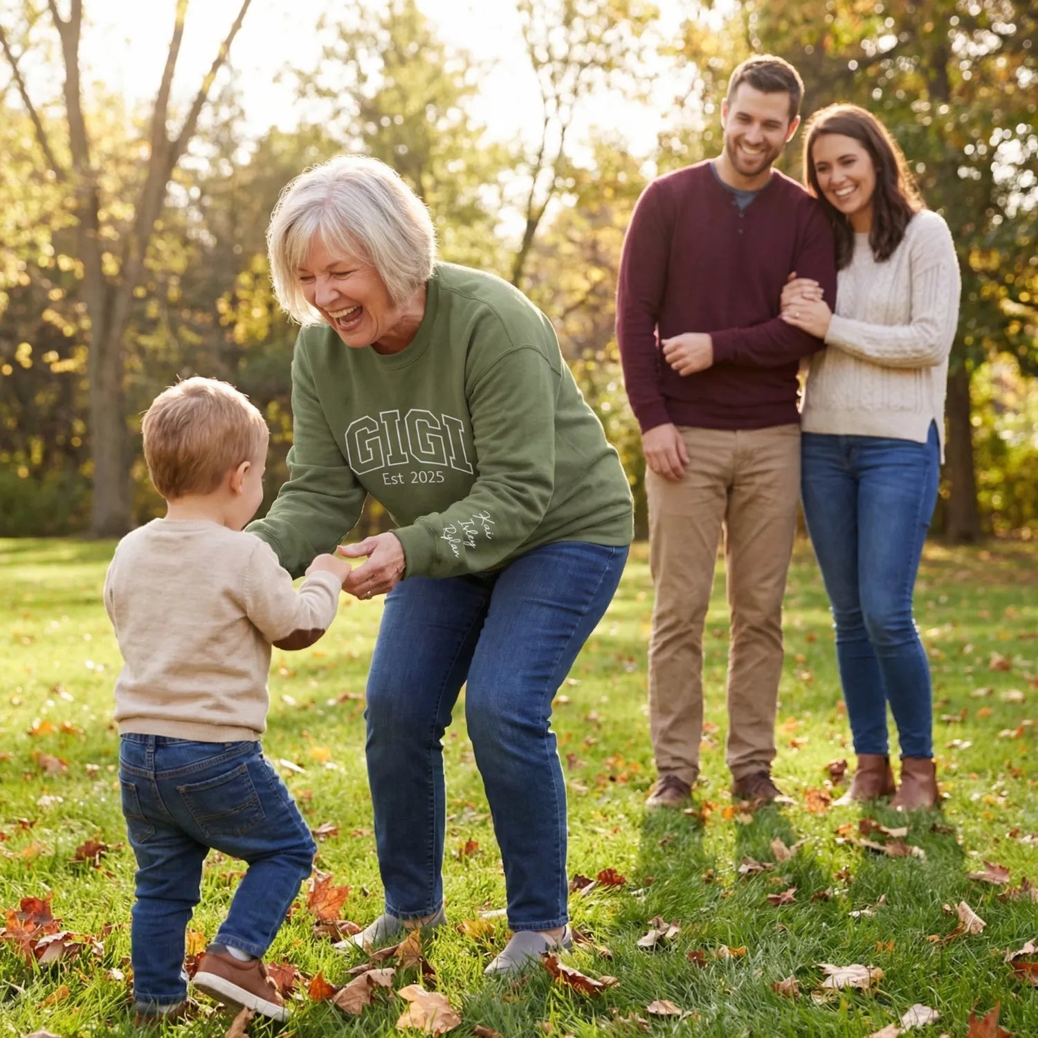 A personalized Gigi sweatshirt with grandkids names is one of the most thoughtful gifts you can give for Mother’s Day, birthdays, Christmas, pregnancy announcements, or a new grandma surprise.