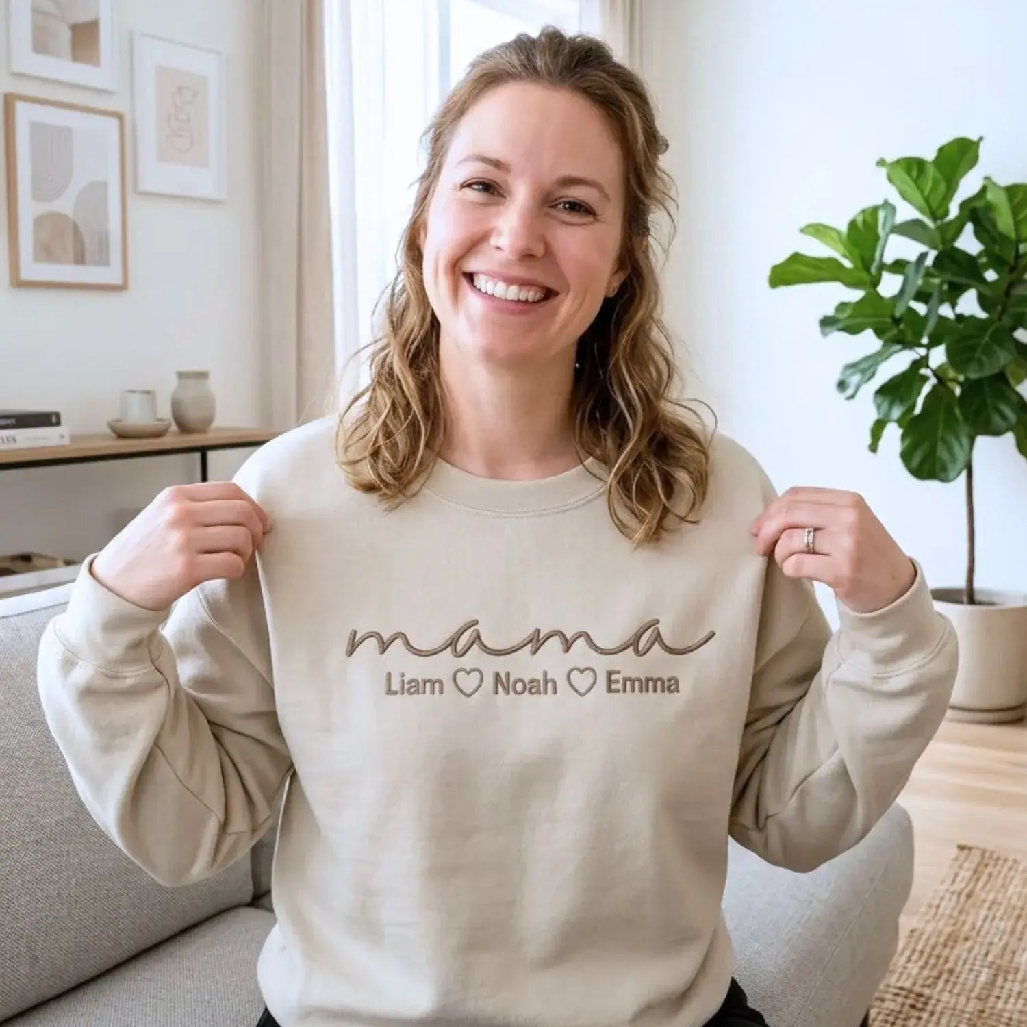 Personalized Mama Sweatshirt with Kids Name on Chest is a meaningful and cozy gift designed to celebrate the love of motherhood. This beautifully embroidered sweatshirt features the word “Mama” on the chest, personalized with the names of her children, creating a heartfelt keepsake she can wear every day.