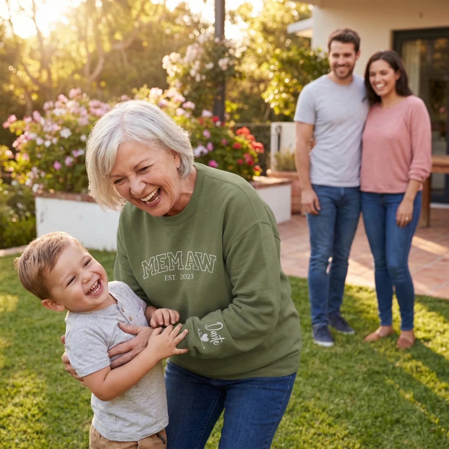 Give Memaw a gift that celebrates family love and lasting memories. Order your custom Memaw sweatshirt with grandkids names today and create a keepsake she will cherish forever.