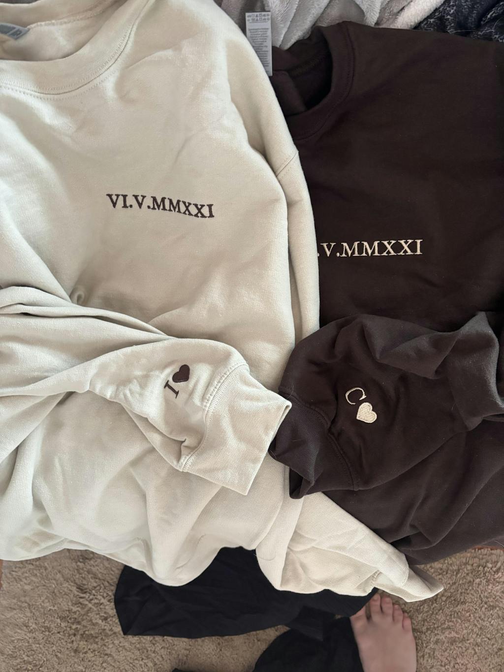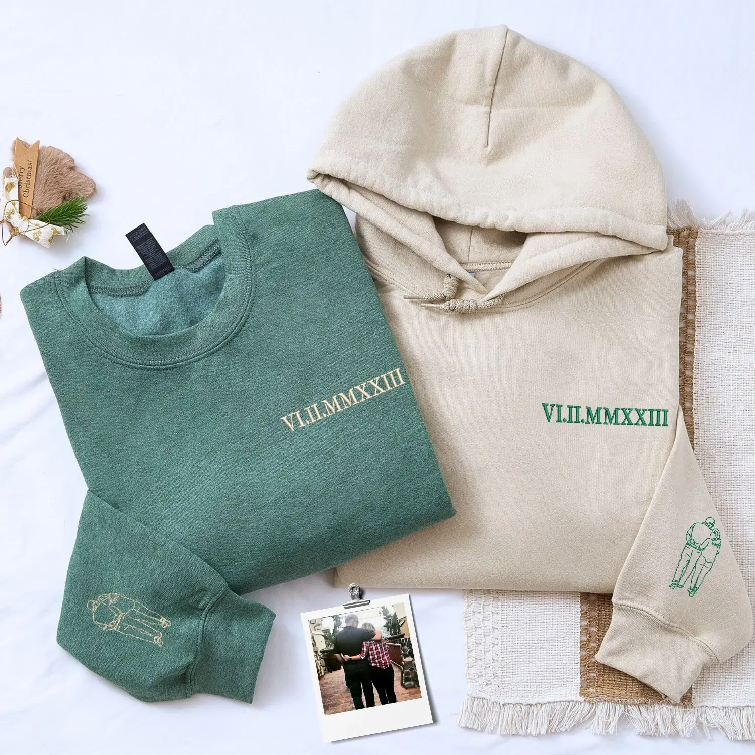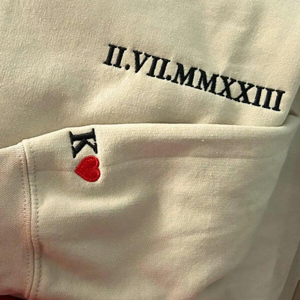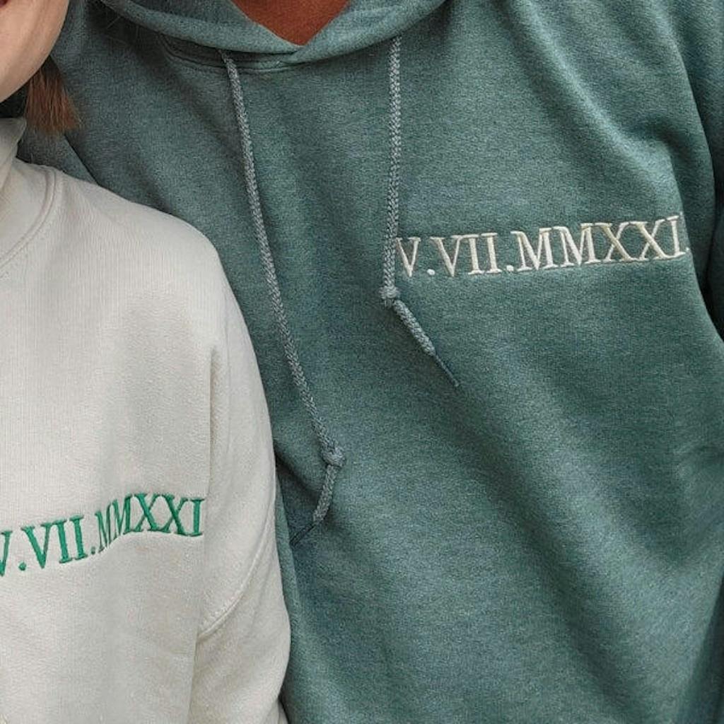 Our custom-embroidered hoodies and sweatshirts transform your special dates into timeless Roman numeral designs, creating wearable keepsakes that whisper your unique love story.
