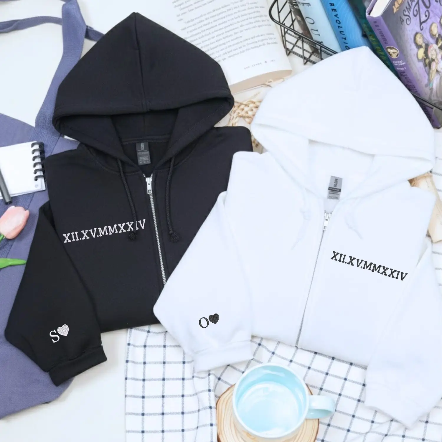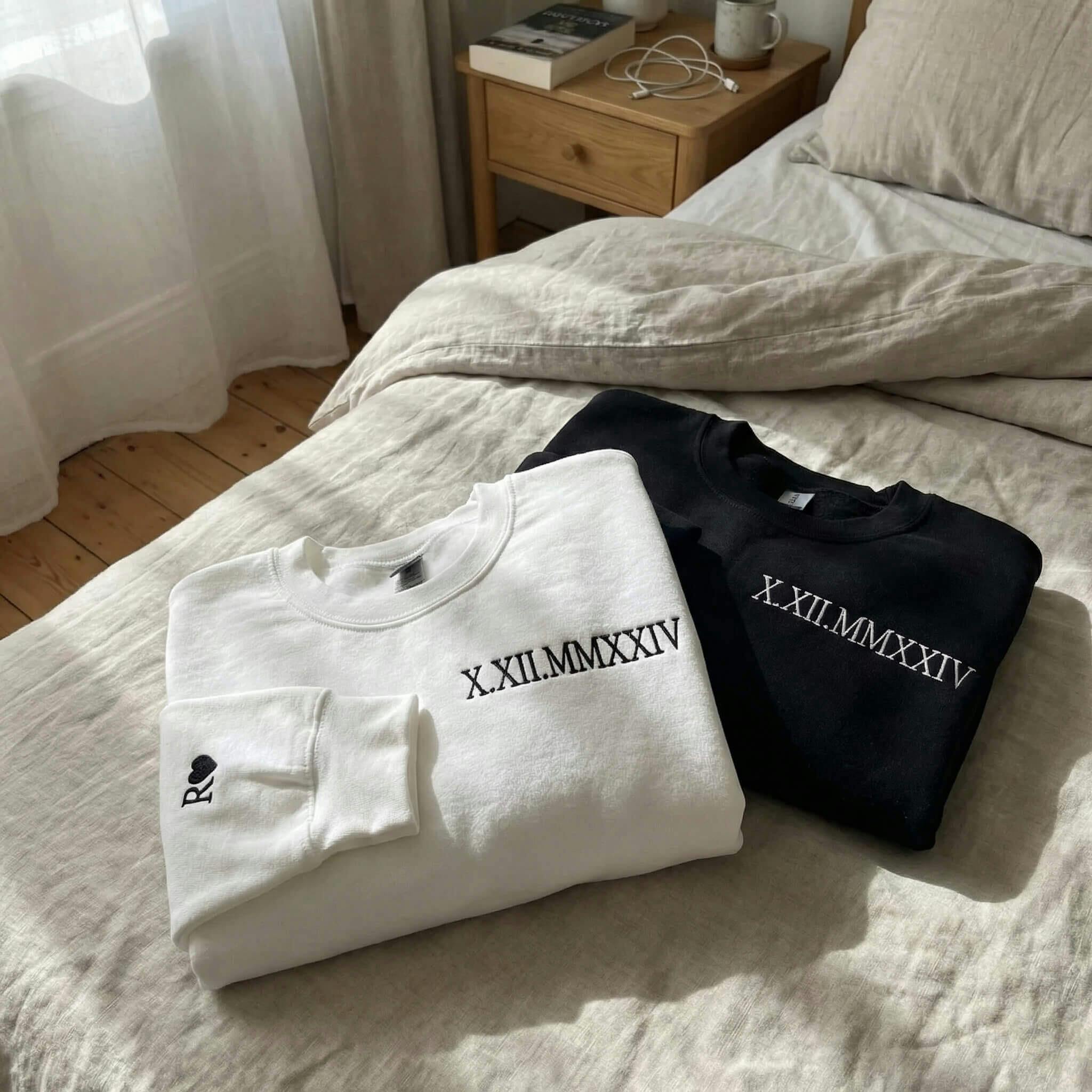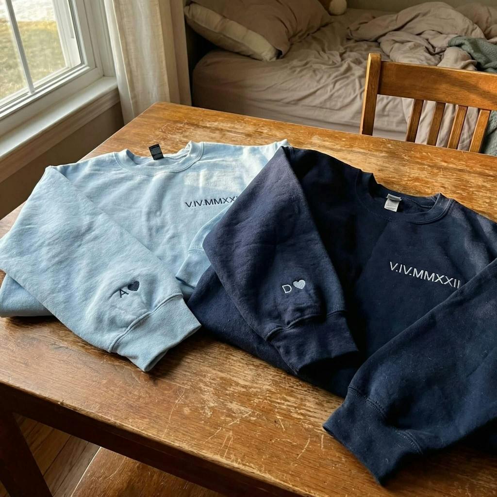 Our custom-embroidered hoodies and sweatshirts transform your special dates into timeless Roman numeral designs, creating wearable keepsakes that whisper your unique love story.