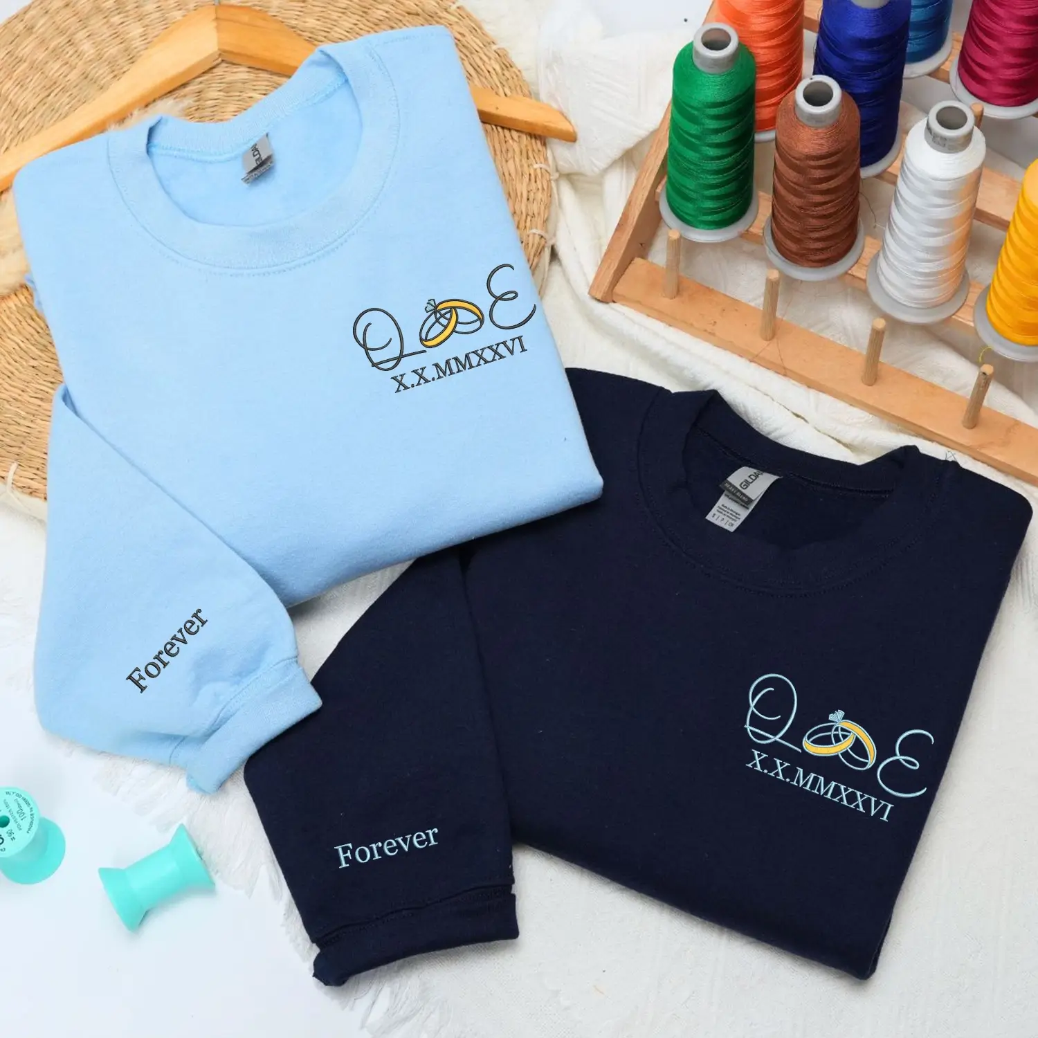 Crafted from soft, premium fabric, this embroidered sweatshirt is designed for everyday comfort while carrying deep emotional value. The Roman numeral date embroidery adds a classic, elegant touch, while the custom ring initials create a subtle yet intimate detail. Each piece is carefully stitched to ensure durability, clarity, and a refined finish that lasts long after the celebration.