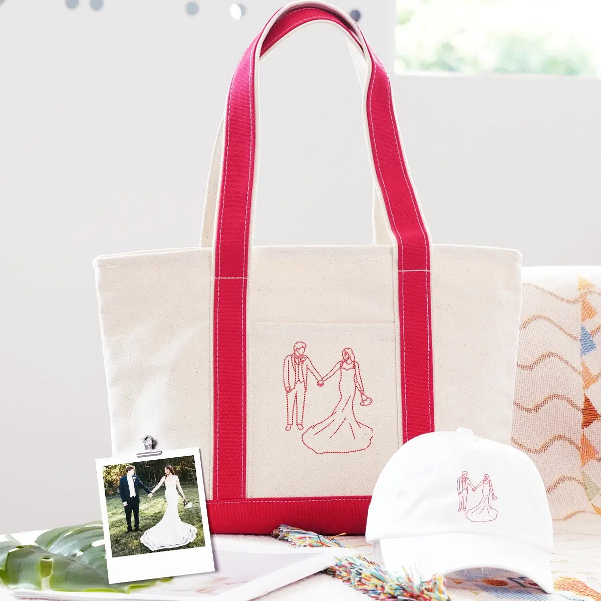 Calling all couples! Celebrate your unique bond with our exclusive His & Hers Twin Pack: Embroidered Hat & Tote Bag. This stylish set is the perfect way to add a personal touch to your everyday look, whether you're out for a stroll, running errands, or enjoying a day together.