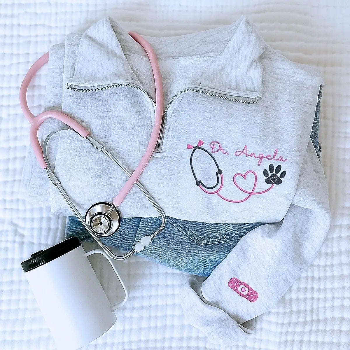Custom Embroidered Vet Tech Quarter Sweatshirt with Name on Chest, Vet Tech Gifts