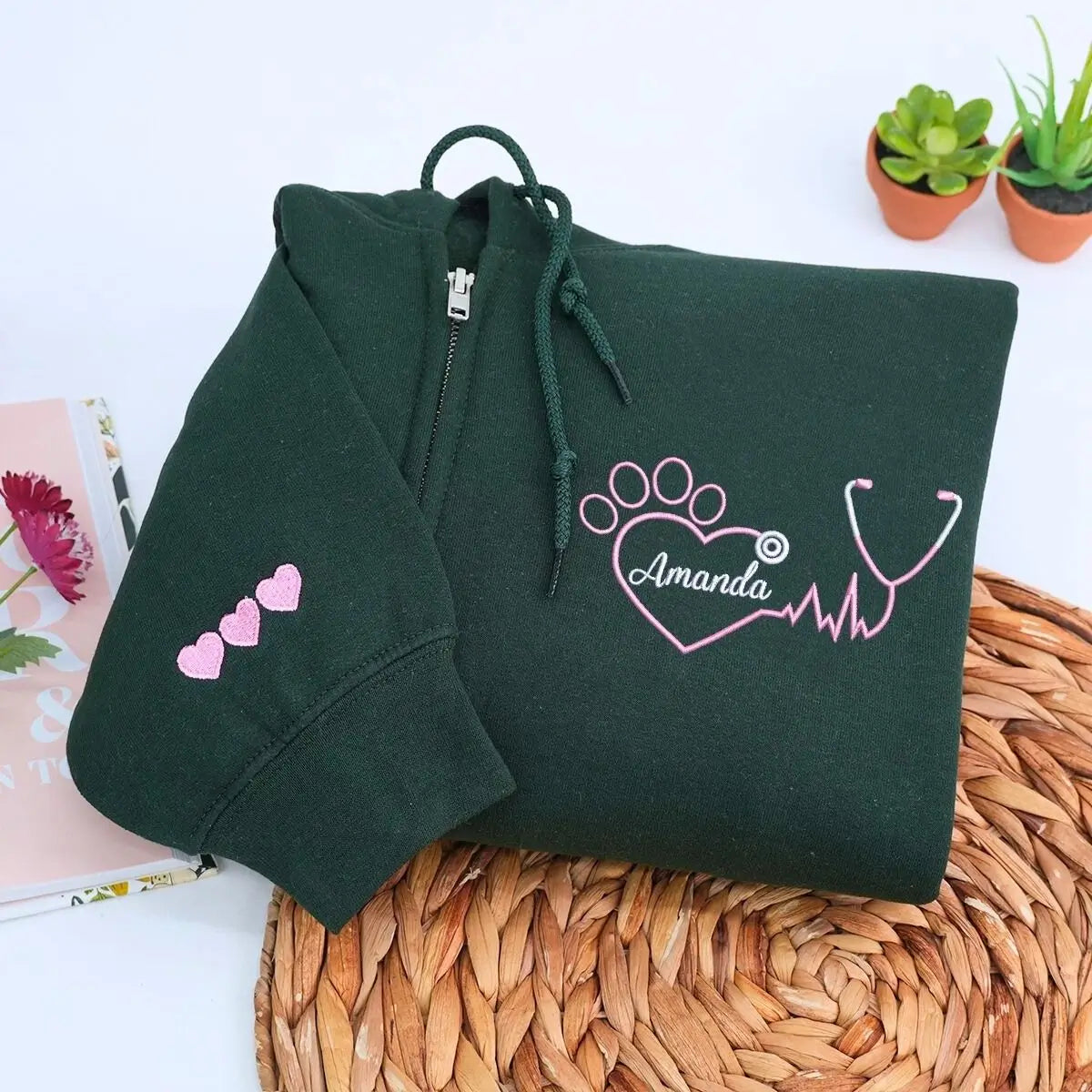 Custom Veterinarian Sweatshirt with Name & Sleeve Text – Embroidered Vet Nurse Gift